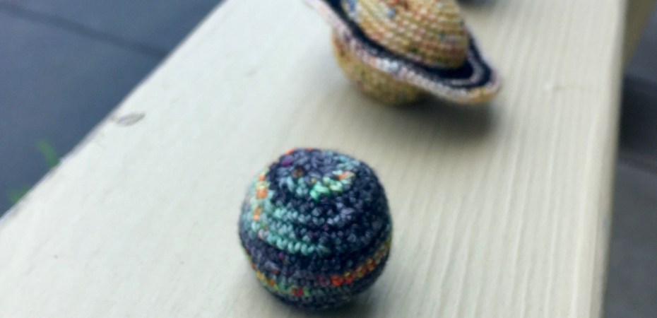 I attended a friend’s baby shower in Washington DC this past weekend, and I made a solar system garland for their nursery. I used the Hedgehog Fibres sock minis that I bought on my trip to Do Ewe Knit? in New Jersey.